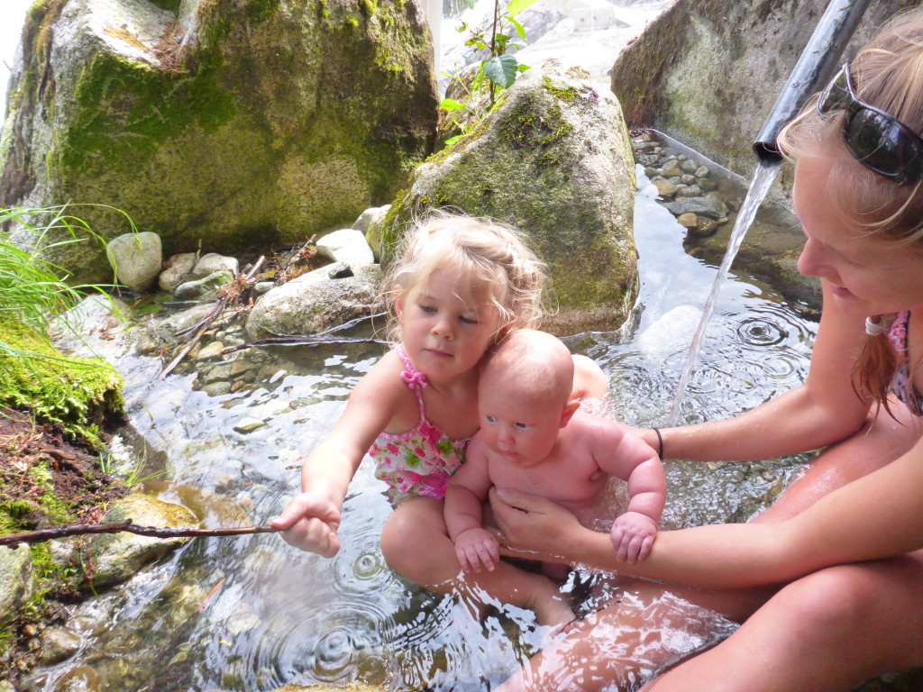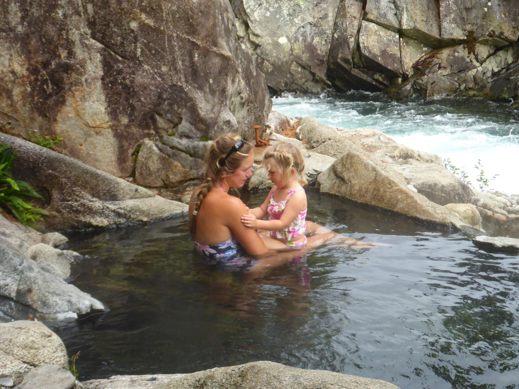 Today was a long day of motoring. After sailing around the pacific, this motoring is getting old FAST! After about 4 hours we stopped at shoal for lunch and dropped the crab trap. Hauled it up on our way out and it had two keepers- that’s a productive lunch break! We arrived in Baranoff around 2 pm and were lucky to snag a spot on the dock. Our stay there became as magical as promised. We headed for the natural hot spring first- and they are HOT! Fynn and I had a soak but it was too hot for her. A bit of exploring and we found a small pool of river water, conveniently beside a broken pipe that should have been transporting hot water to the houses on the beach. I was able to divert the pipe into the cold water and shortly it was warm enough to play in. Even Bowen got to go in!