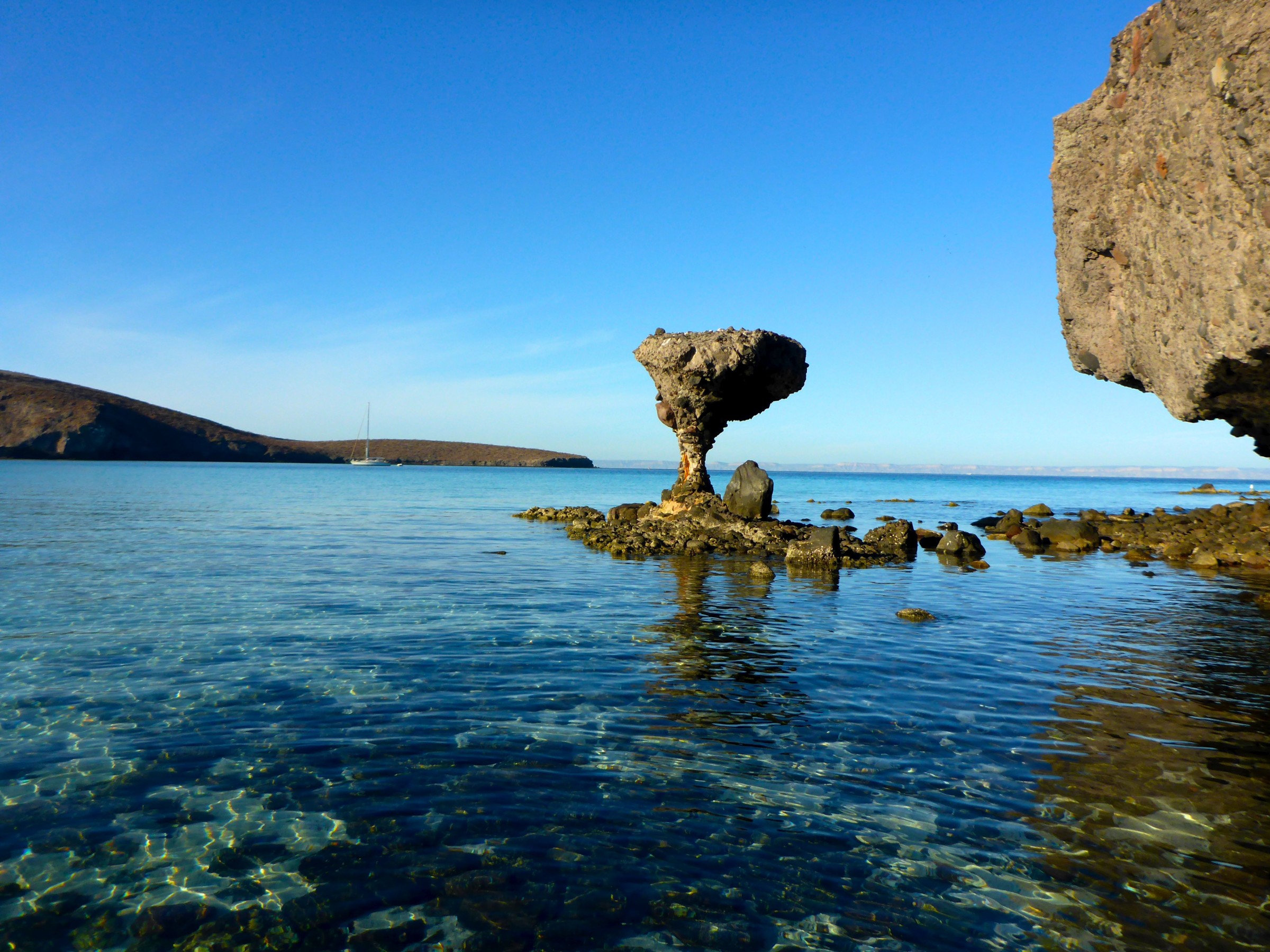 Our favourite anchorage in the Loreto Park was off the south side of Coronados. We found this anchorage to be great, even in thirty knots of northerly winds. We anchored here a few times, and hiked up the 926’ volcano twice. The hike take about 4 hours round trip, and the views are stunning. Except for a stretch on loose rock and another steep bit up sand it is a great trail.