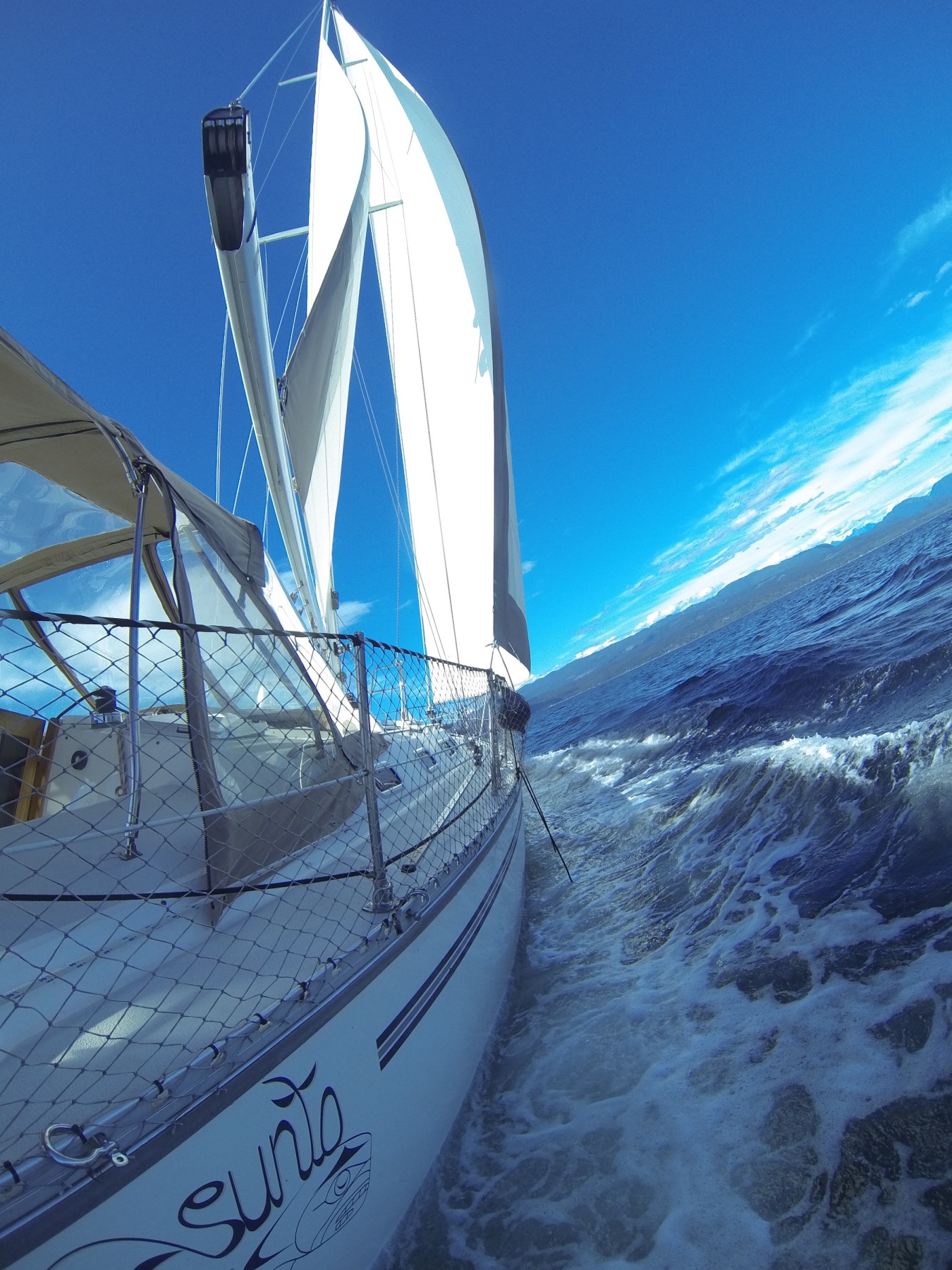 Bringing up the anchor was another challenge. The bow would cut into the waves, and the wind, now up to 20+ knots, was determined to spin us broad side. Otto was also struggling. Without a taught tow line the wind would sweep her sideways… There was one moment where Kolby was certain she would flip.. I remembered wondering if leaving was the best choice, or if we should stay and wait it out.