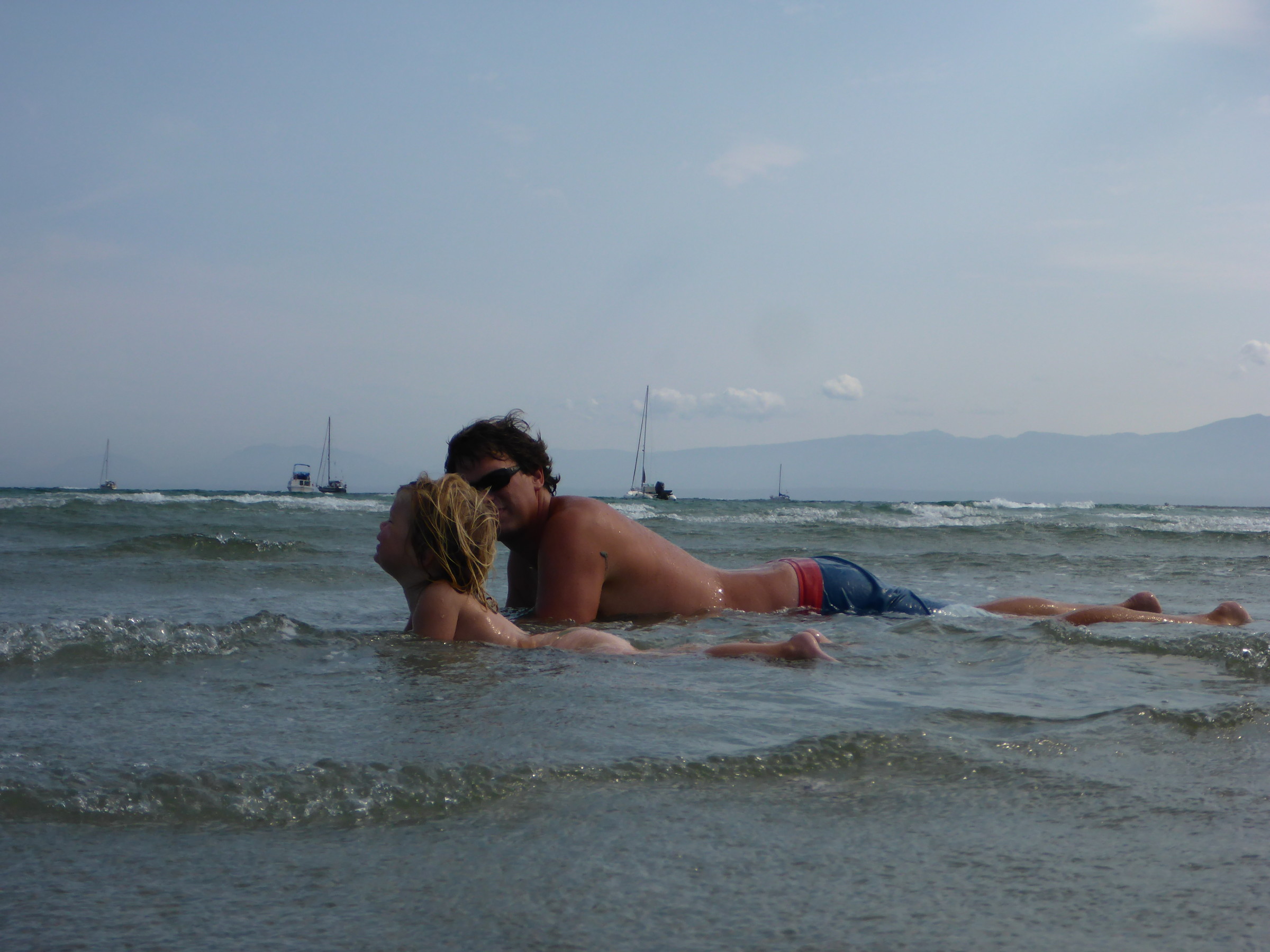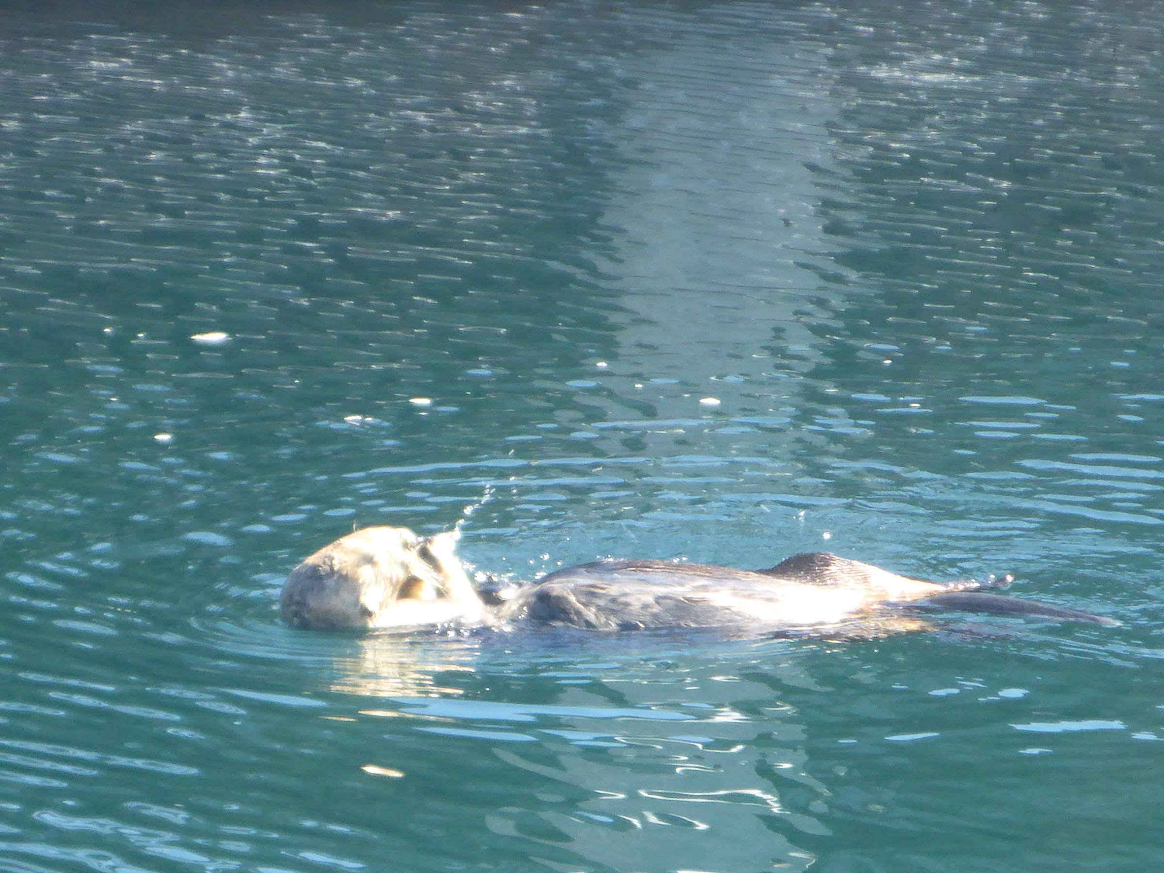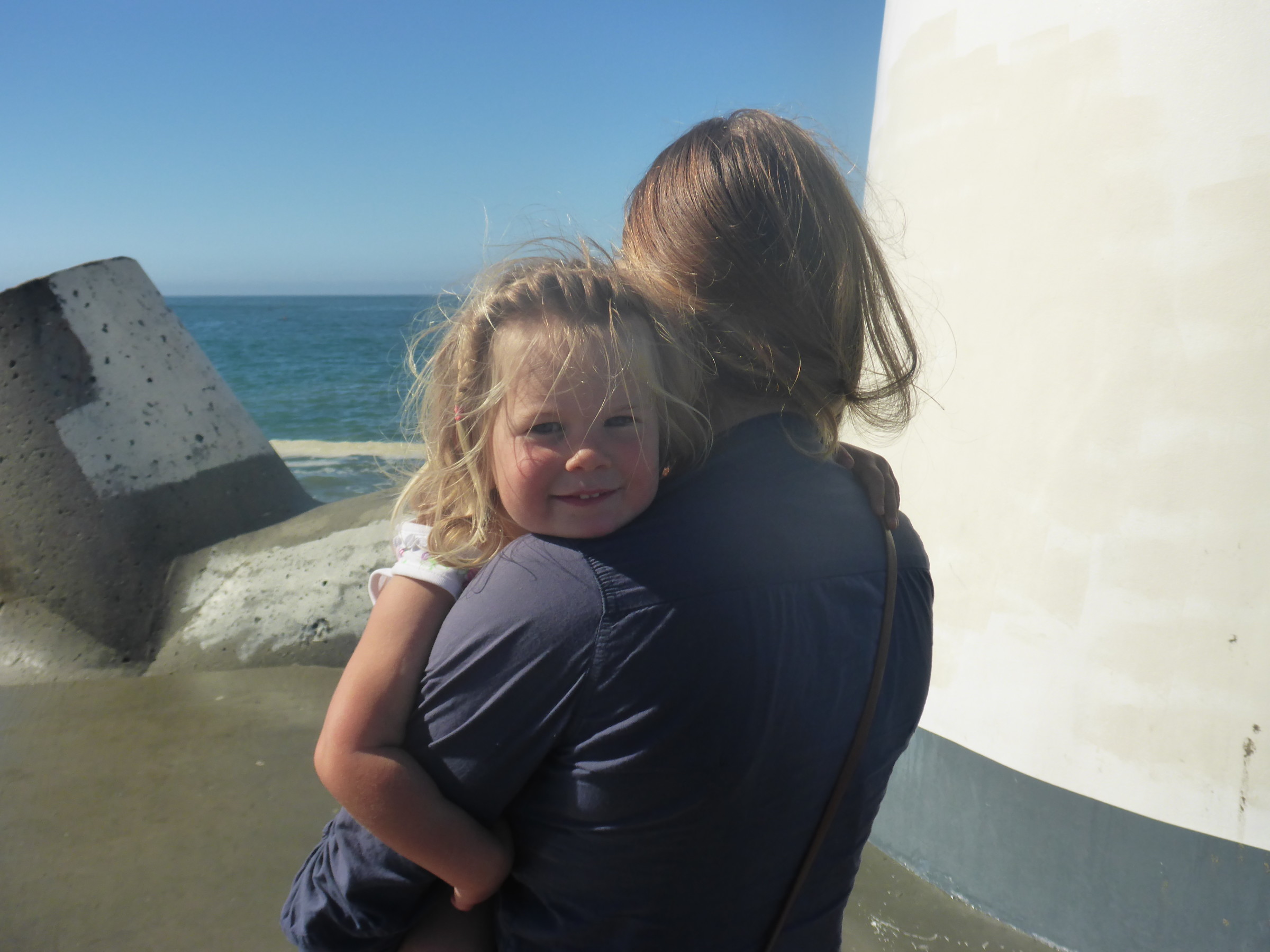 Trying to take the dinghy to shore turned out to be quiet the story. We brought it into the beach on the east side of the pier, and the pier was dampening a lot of the waves. The beach landing worked great- we raced the dinghy up the shore on the wheels. But we couldn’t get it far enough up to get out of the waves. It was quickly clear that we could leave it here. Turning around we battled the surf to get back floating, not an easy feat. Once Kolby was puttering away- heading back to the boat to pick us up later- a lifeguard swam out to him. “You can’t use your motor within the white markers!” “What white markers?” Kolby asks. The lifeguard looks around “Oh, I guess they just removed them! Do you have a paddle?” “Yes but… I would rather not paddle this beast of a dinghy.” “Ok I will tow you!” replies the lifeguard as he grabs a line and starts swimming. Kolby of course can do nothing but grab a paddle and help. The two lifeguards on the pier see what is happening and figure Kolby is having engine problems. They run down to the public access dock, which is covered with sea lions, and start to (unsuccessfully) clear the beasts off. “Umm I can just drive away now …” Kolby calls out between roars of protesting sea lions.
