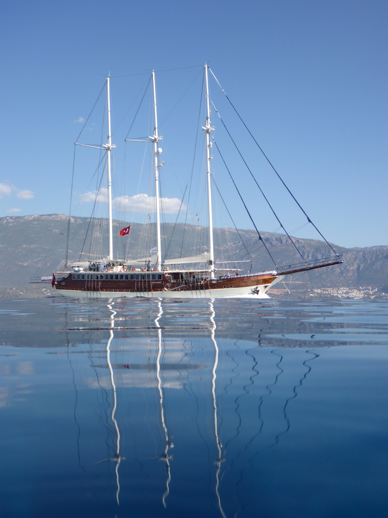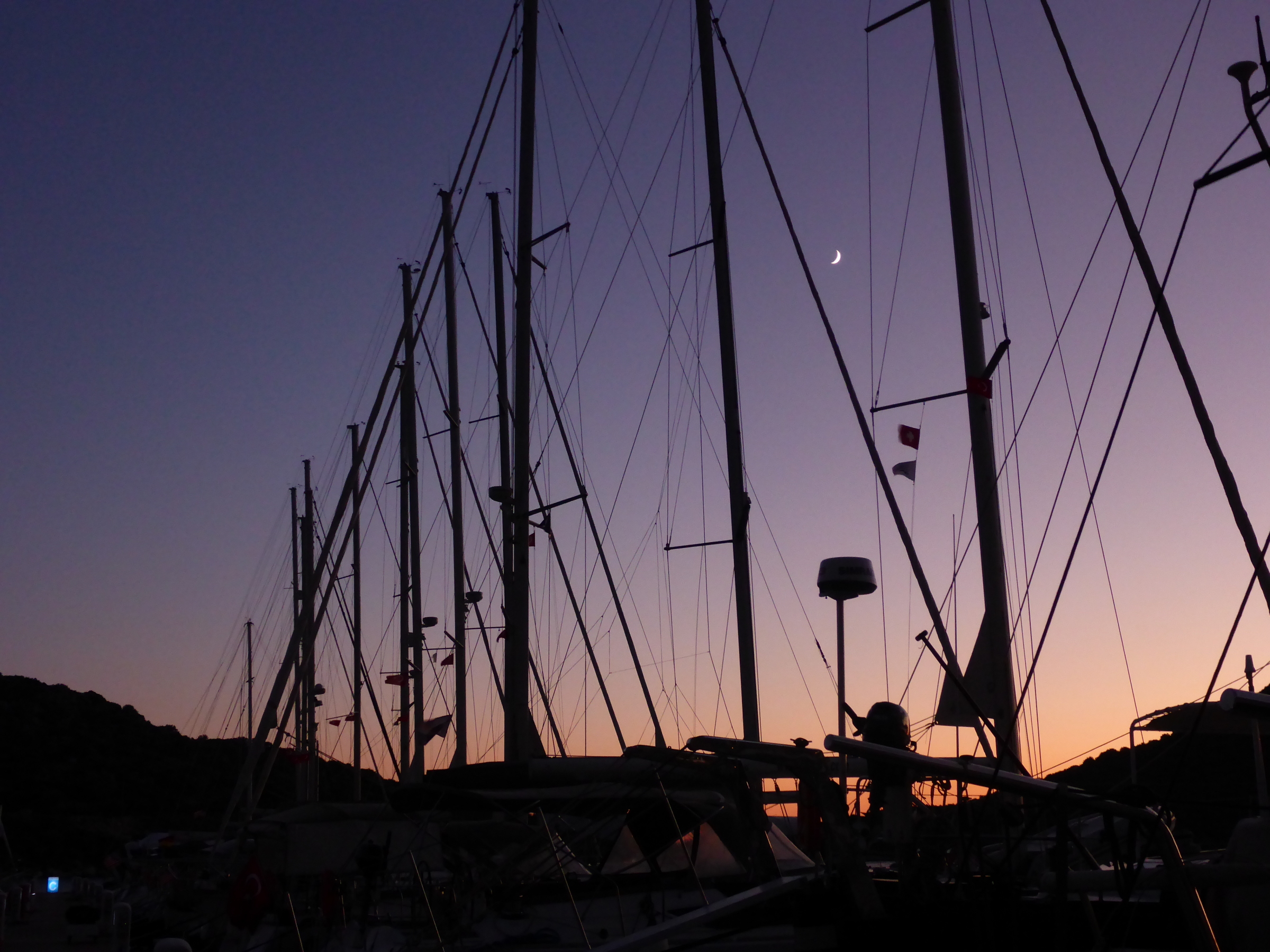 We have made it safe and sound and jetlagged to Turkey. What a tricky age to travel! A flight attendent told me she refused to travel with her kids between ages of 1 and 2- and thats from a pro! We were lucky that Fynn slept most of the flight, but I am exhausted. Paikea Mist is ready to go! Here she is med moored at Kas Marina.