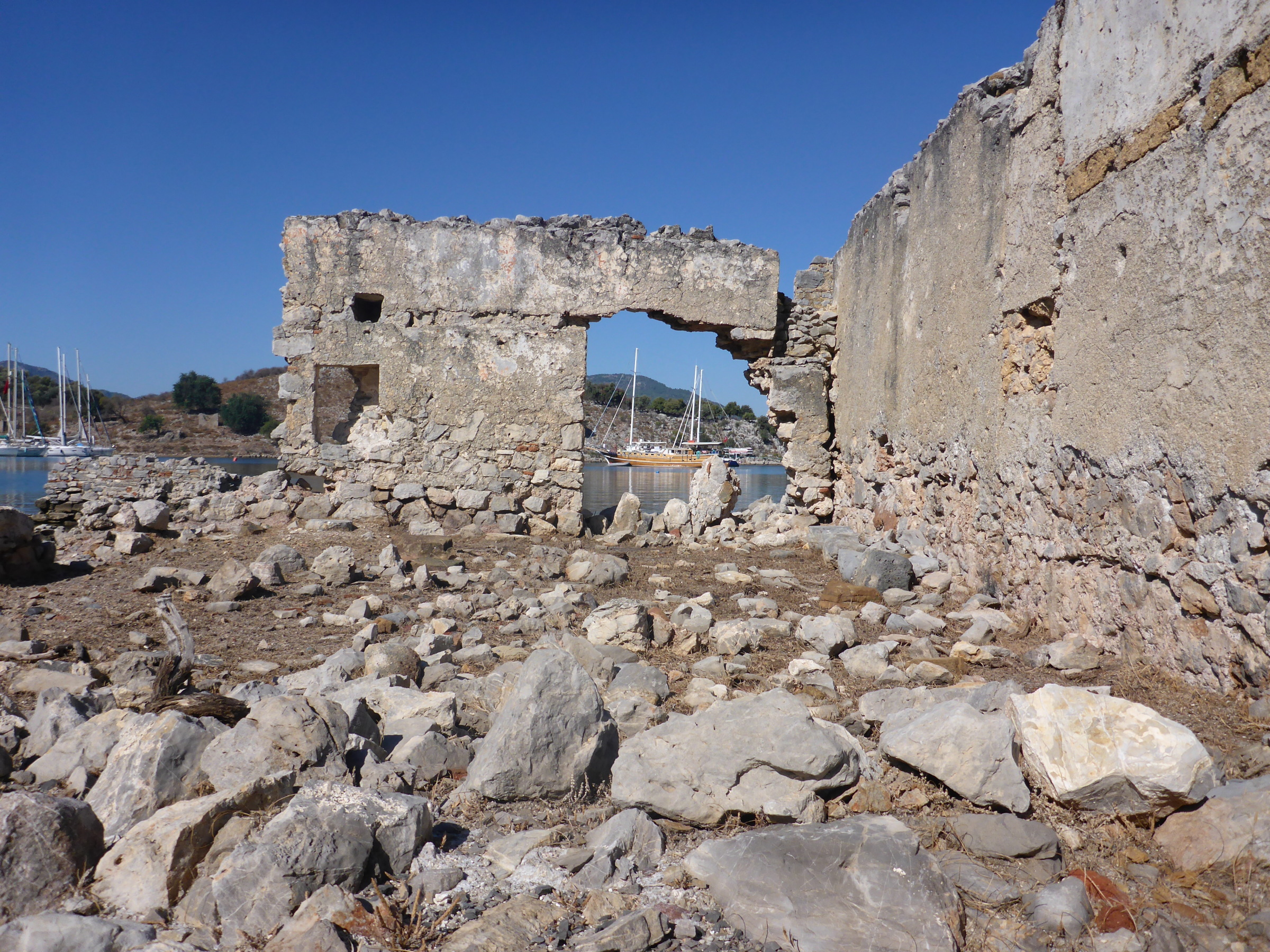 Exploring the ruins of the old Greek town of Kaya. It was abandoned after the exchange of peoples between Turkey and Greece in the 30s